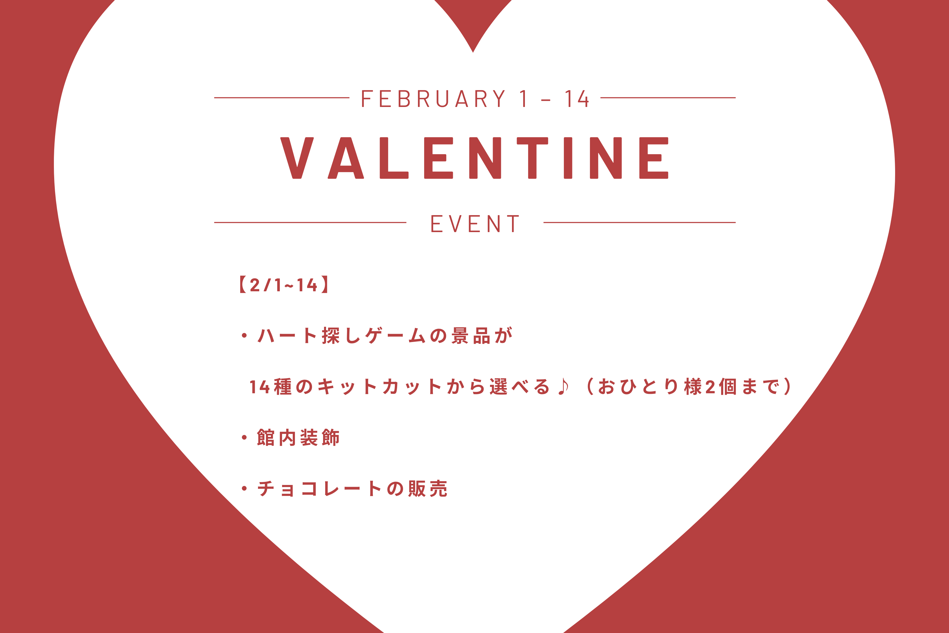 当館では下記期間中、館内をバレンタイン仕様に装飾しイベントを実施いたします。